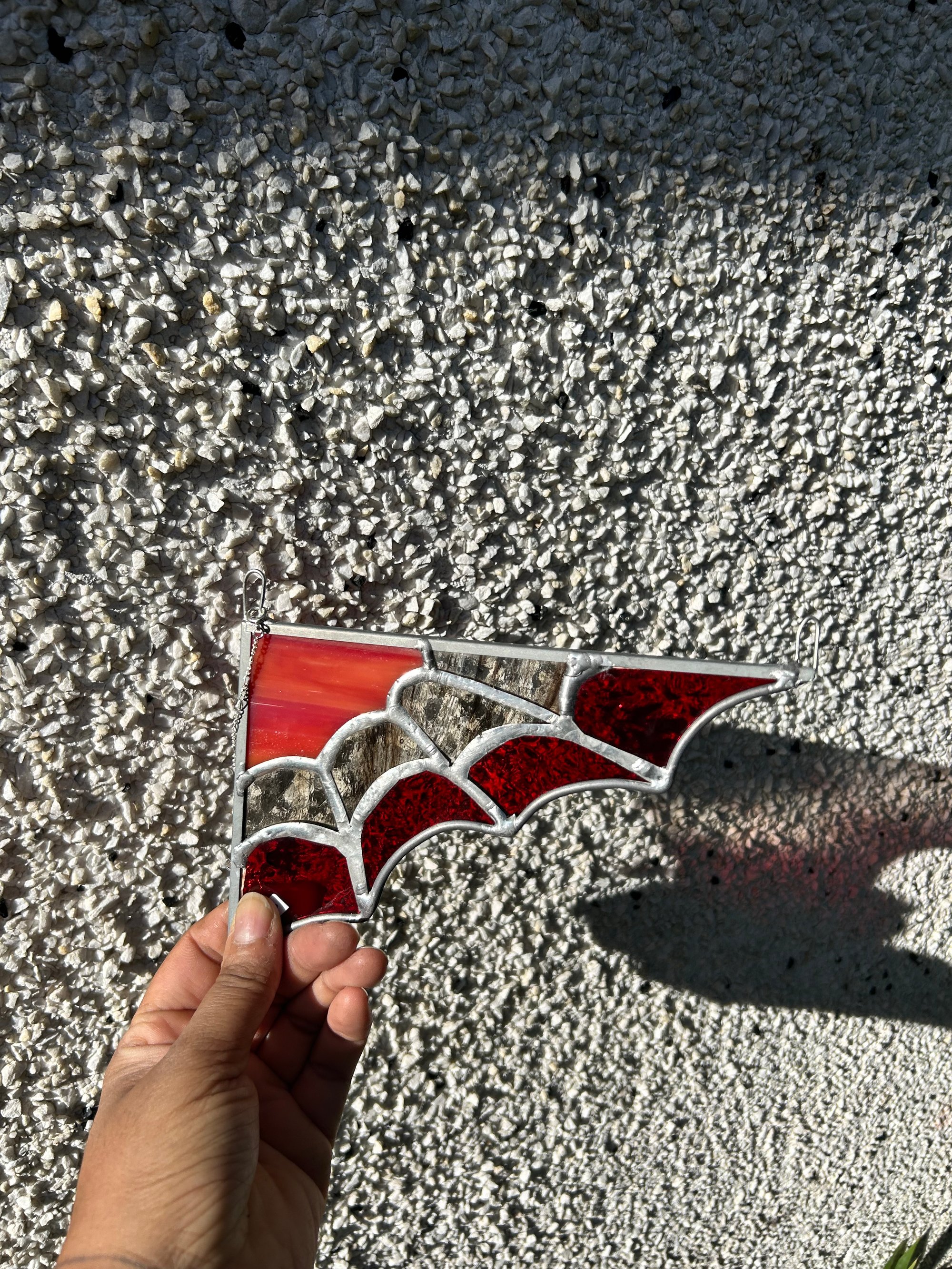 This one is crafted with red, pink, & streaky brown coloured glass segments