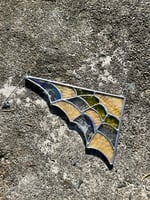 Spiderweb inspired stained glass piece intended to bring a little cheerful lightness to your window corner